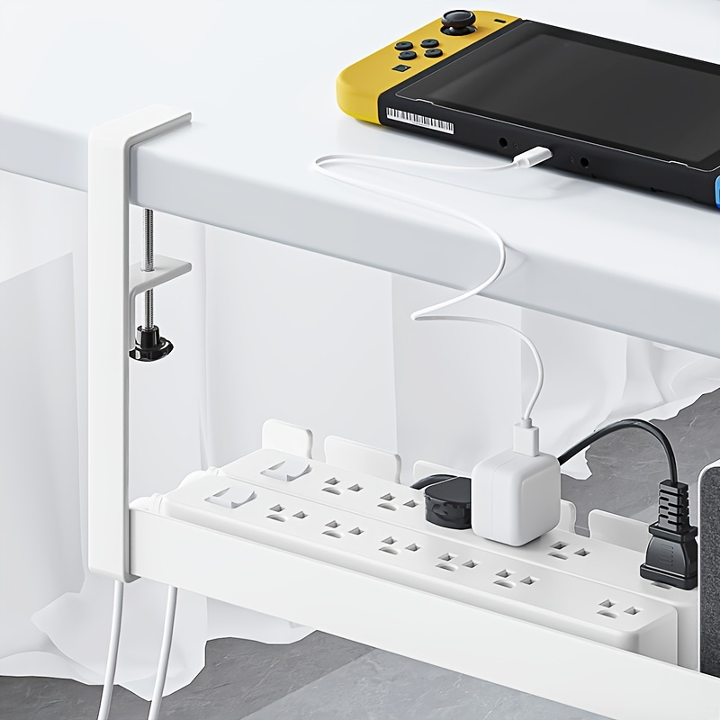 Keep your workspace neat and efficient with this adjustable under-desk cable management tray. Designed with a sturdy metal mesh construction and a no-drill clamp mount, this cable organizer is perfect for offices, gaming desks, home workstations, and professional setups. It fits desks up to 27 mm thick and is ideal for hiding cables, power strips, adapters, and chargers underneath your work surface.